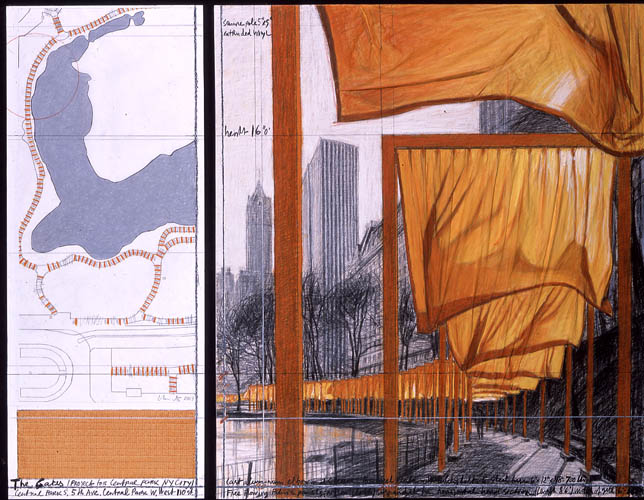 ‘The Gates’ cost 21 Million dollars to be realized. And now get this: What is truly amazing about Christo and Jeanne-Claude is that refuse any financial assistance for the realization of the their mega works. Their primary source of income is the sale of sketches, paintings and collages of their projects before realization.